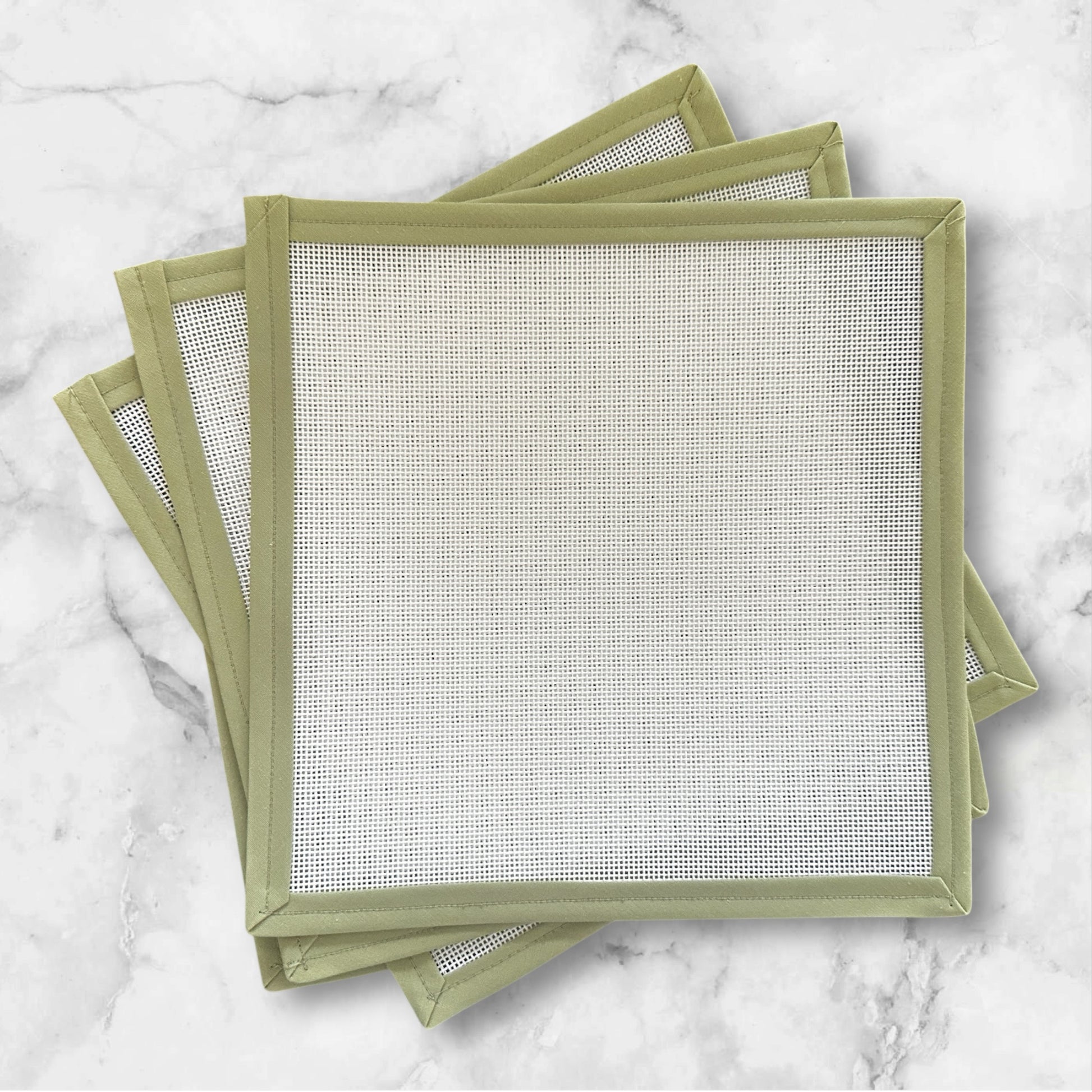 All canvases will come presewn with bias tape (either green or a medium gray, dependent upon the option chosen at purchase)